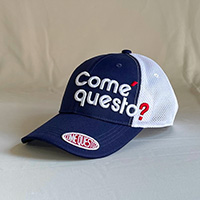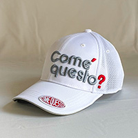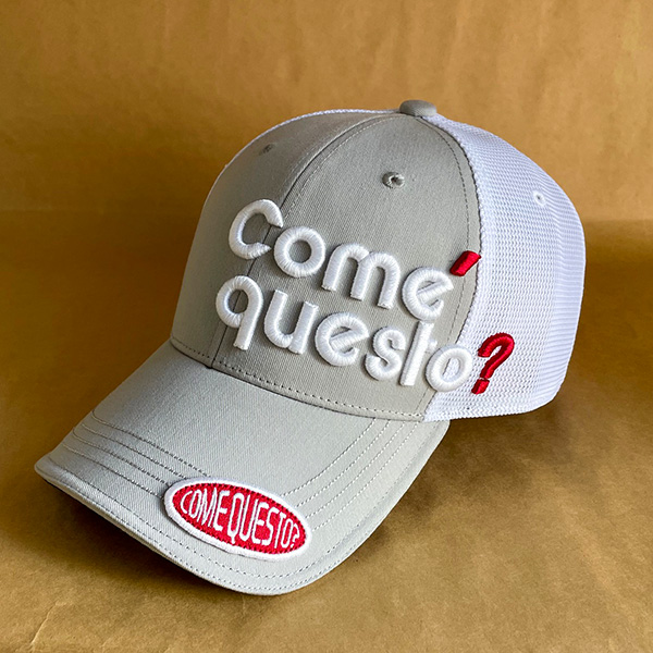 前面にコメクエストロゴが立体的な3D刺繍で入り、